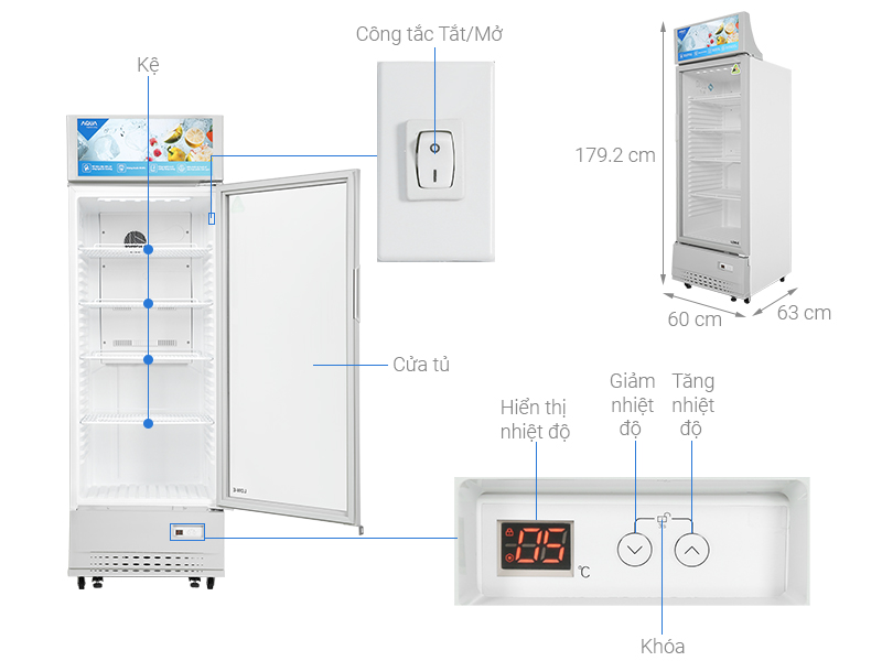 – Thiết kế: Tủ mát 1 cửa dáng đứng, kích cỡ nhỏ gọn phù hợp với nhu cầu bảo quản thực phẩm, đồ uống, trưng bày sản phẩm ở các cửa hàng tạp hóa, cửa hàng tiện lợi nhỏ.
