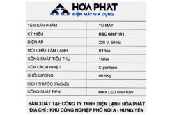 Tủ mát Hòa Phát 242 Lít HSC 600F1R1 thiết kế 1 cửa tủ với dung tích 242 lít nhỏ gọn dễ dùng cho tạp hoá, quán ăn, cửa hàng nhỏ để trưng bày hàng hoá,…. Công nghệ làm lạnh trực tiếp giữ thực phẩm tươi mới ở mức nhiệt 0 – 10°C, luồng khí lạnh lan toả nhanh và ổn định, cửa kính cường lực 2 lớp hạn chế đọng sương luôn đảm bảo thẩm mỹ.
