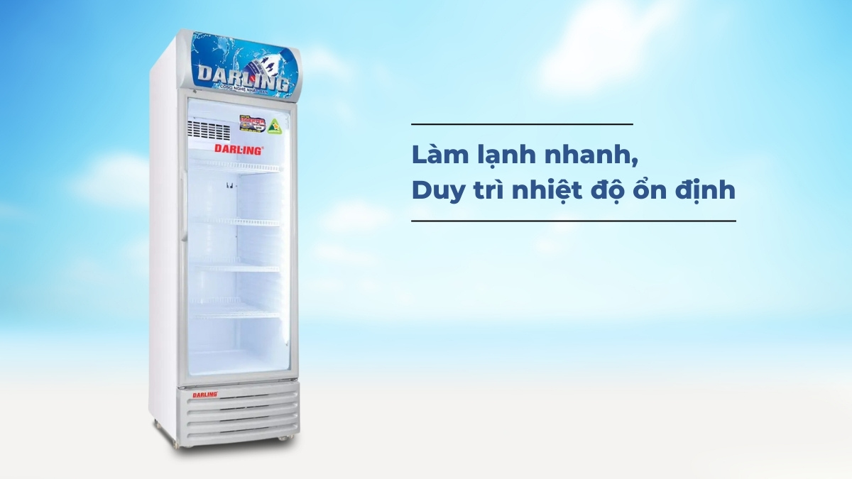 Chiếc tủ mát Darling 1 cửa này có dung tích là 400 lít. Do đó, người dùng có thể bảo quản và lưu trữ lượng lớn thực phẩm. Không chỉ bảo quản thực phẩm sử dụng trong gia đình, tủ còn phù hợp cho các cửa hàng tiện lợi, tiệm tạp hóa, nhà hàng,…