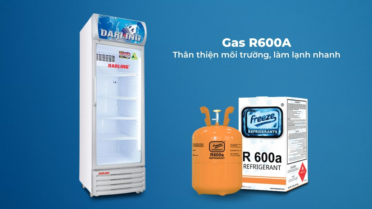 Gas R600a cũng góp phần giúp cho Tủ Mát Darling Inverter 400 Lít DL-4000A3 làm lạnh nhanh và hiệu quả hơn. Dòng gas này được đánh giá là có khả năng truyền nhiệt tốt, do đó máy nén không phải tiêu hao nhiều điện năng vẫn có thể làm lạnh cho toàn bộ thực phẩm.
