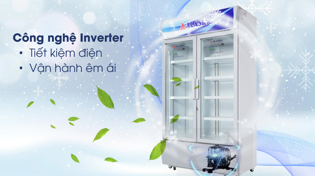 Mẫu tủ mát Alaska 800 lít này được trang bị công nghệ Inverter có thể điều chỉnh vòng quay máy nén linh hoạt, để giúp tủ duy trì được nhiệt độ lạnh tối ưu bên trong nhằm mang lại hiệu quả tiết kiệm điện, đồng thời giúp máy vận hành êm ái, tránh phát ra tiếng ồn quá lớn làm ảnh hưởng đến không gian xung quanh.
