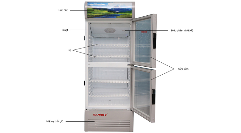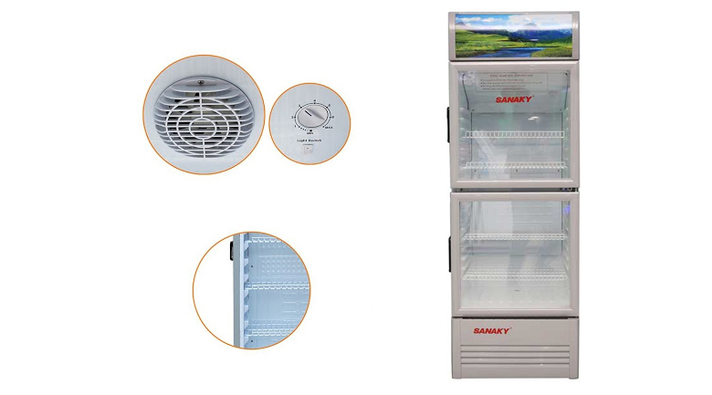 Tủ mát Sanaky được làm mát nhờ quạt đảo nhiệt lên hơi lạnh có thể len lỏi đến tất cả các vị trí của tủ giúp bảo quản hàng hóa an toàn nhất, giữ nguyên chất dinh dưỡng.