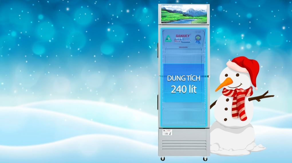 – Tủ mát Sanaky có dung tích sử dụng là 240 lít giúp phân loại thực phẩm dễ dàng, hạn chế thất thoát hơi lạnh ra ngoài khi mở cửa tủ quá nhiều.