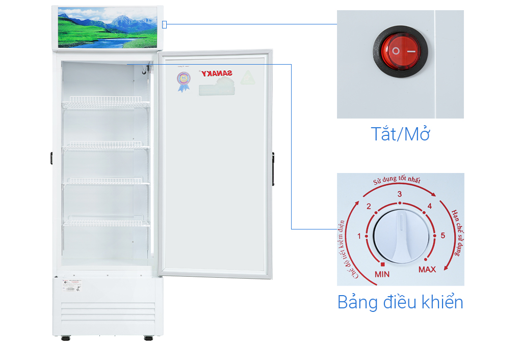 Nhìn chung, tủ mát Sanaky này được thiết kế đơn giản, với kiểu dáng 1 ngăn mát thích hợp trưng bày các loại nước giải khát, trái cây hay bánh kem. Công nghệ cửa kính Low-E hạn chế thất thoát hơi lạnh, chống đọng sương trên cửa tủ cùng dàn làm lạnh bằng đồng cho hiệu suất làm lạnh cao, đây sẽ là trợ thủ đắc lực cho việc lưu trữ và bày trí thực phẩm tại các căn tin, tiệm tạp hóa.