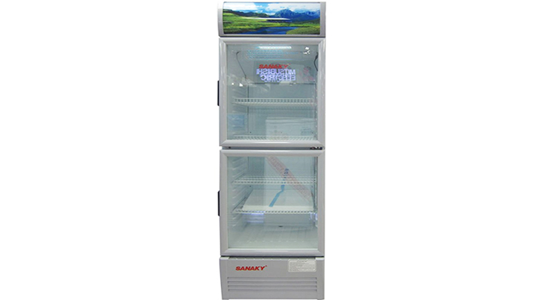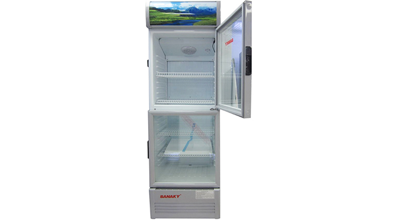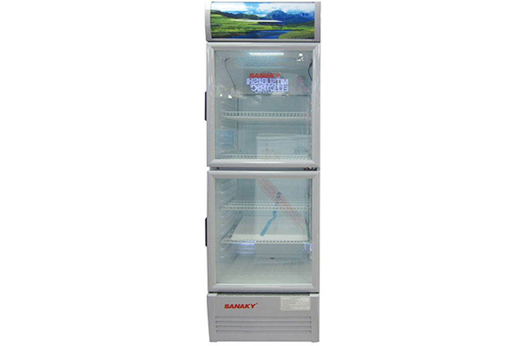 Tủ mát Sanaky với thiết kế chuyên dụng gồm hai cửa kính làm hai lớp được hút chân không nên cách nhiệt tốt và tiết kiệm điện, có hệ thống sưởi kính, đảm bảo luôn khô ráo, và chống nấm mốc.