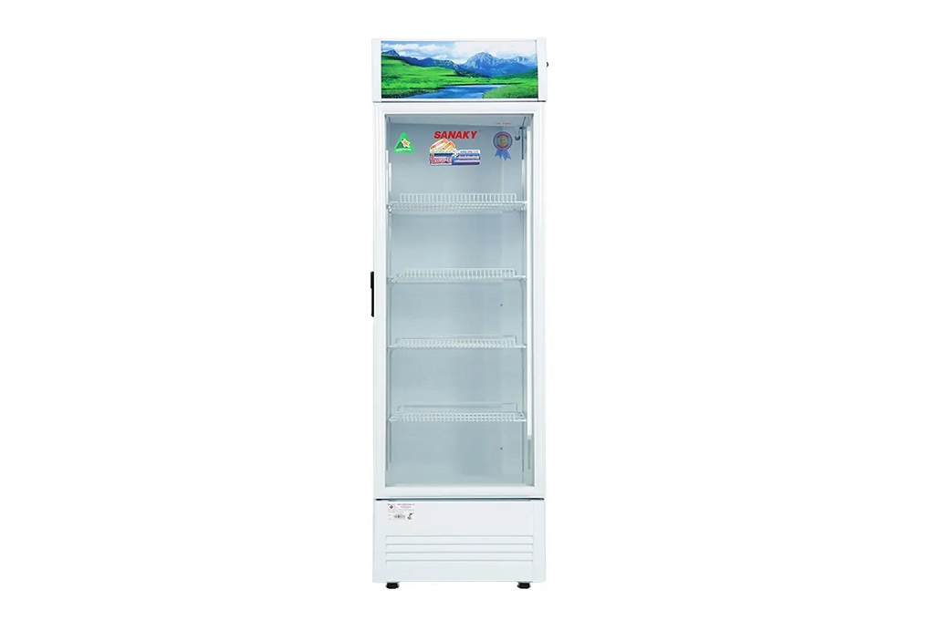 Tủ mát Sanaky được thiết kế với 1 cánh cửa kính trong suốt, gọn gàng, không chiếm quá nhiều diện tích. Tổng thể tủ là tông màu trắng sáng sang trọng. Bên cạnh đó, với dung tích 480 Lít và kích thước của thiết bị thì đây chắc chắn là sự lựa chọn phù hợp cho các cửa hàng tạp hóa, cửa hàng tiện lợi hay các quán nước gia đình.