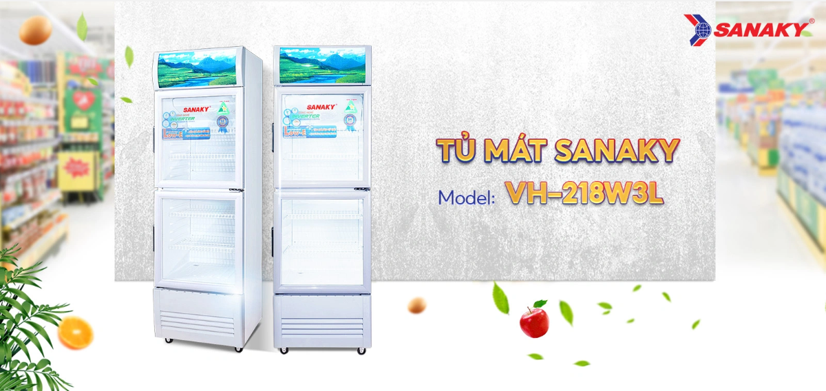 Tủ Mát Sanaky VH-218W3L có kích thước chỉ 535 x 540 x 1605mm cùng thiết kế kiểu tủ mát 2 cánh trên dưới giúp giảm thiểu hơi lạnh thoát ra khi lấy thực phẩm trong tủ
