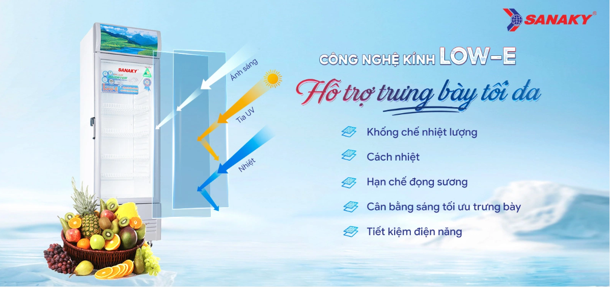 Công nghệ kính Low-E (Low Energy) ở Tủ mát Sanaky là loại kính được phủ một loại hợp chất đặc biệt phản xạ bức xạ ánh sáng mang nhiệt lên trên bề mặt. Loại chất này sẽ giúp kính có khả năng hạn chế tốc độ phát nhiệt, giảm sự phân tán nhiệt và hấp thụ nhiệt chậm…