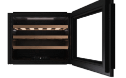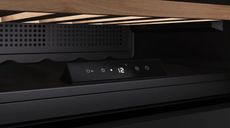 Hệ thống chiếu sáng tinh tế và đồng đều, lý tưởng cho việc bảo quản rượu. Chúng có thể được cài đặt để tự động bật khi mở cửa hoặc duy trì ánh sáng liên tục bên trong.