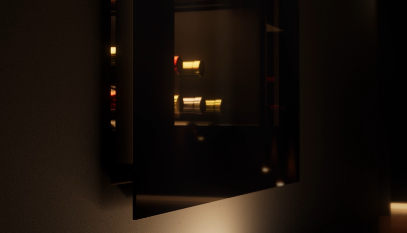 Cửa kính 2 lớp màu giúp ngăn chặn ánh sáng và tia UV, bảo vệ các chai rượu khỏi việc lão hóa sớm và mất đi hương vị của chúng
