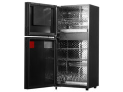 Tủ tiệt trùng dễ dàng tùy chỉnh thời gian làm việc của tủ trên và tủ dưới cũng như nhiệt độ khử trùng tới 125°C.