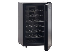 Alaska JC 28S thuộc dòng tủ đựng rượu 1 cánh tủ với kích thước nhỏ gọn chỉ 738mm x 520mm x 460mm, không hề tốn diện tích sử dụng. Cánh tủ được làm từ kính dày dặn trong suốt có khả năng cách nhiệt và quan sát được tình trạng rượu bên trong. Tay cầm của tủ được thiết kế lõm giúp việc đóng mở dễ dàng, không tốn sức.