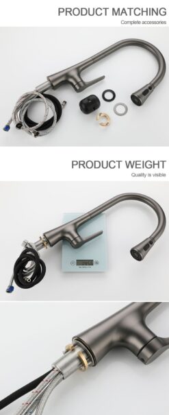 Đầu vòi kéo thông minh: Thiết kế đầu vòi dây rút có thể kéo dài phần đầu và tự động thu lại, giúp bạn dễ dàng điều chỉnh vòi để làm sạch mọi ngóc ngách trong chậu rửa.