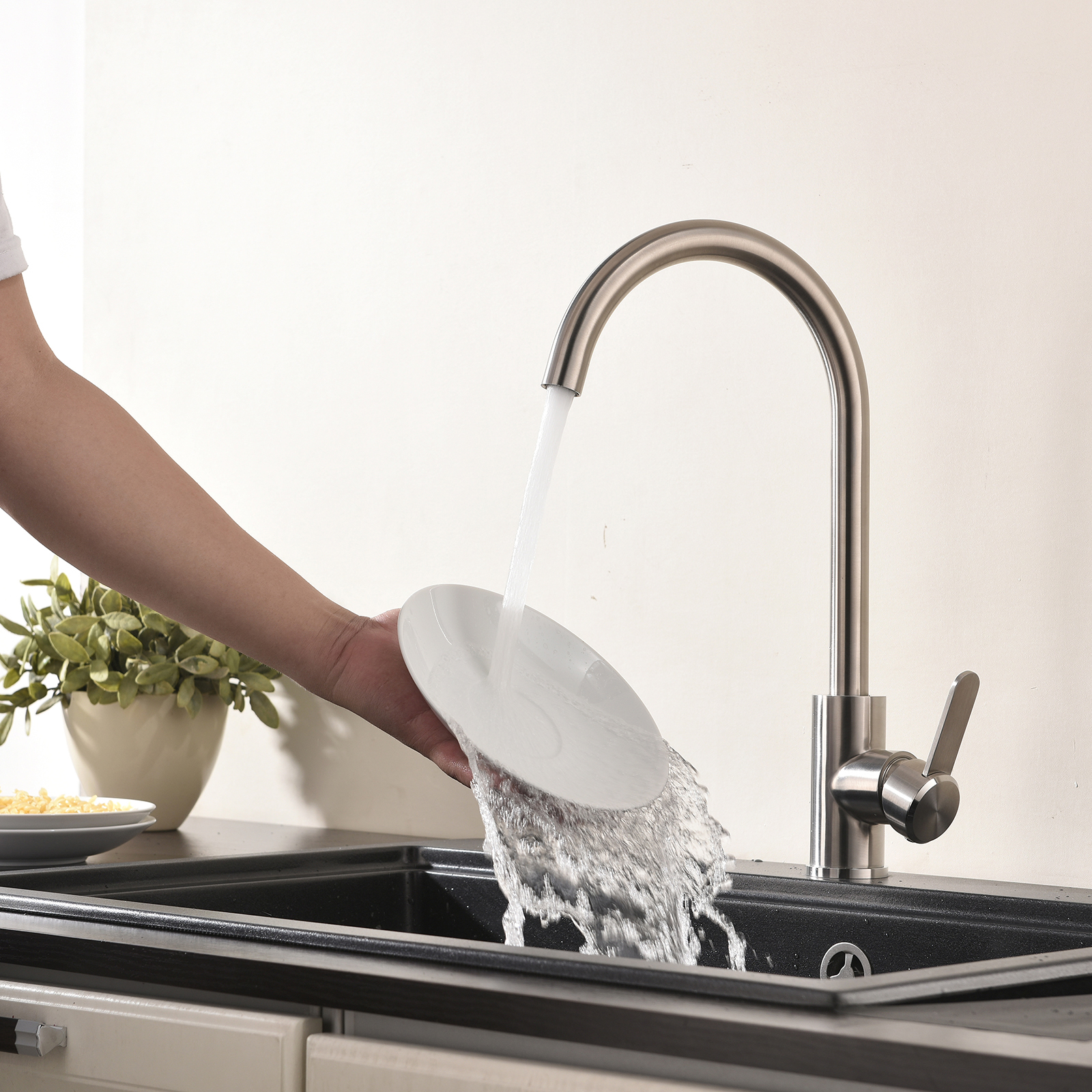 Thiết kế thân vòi không cố định, có thể xoay 360° linh hoạt, cho phạm vi tiếp cận lớn.