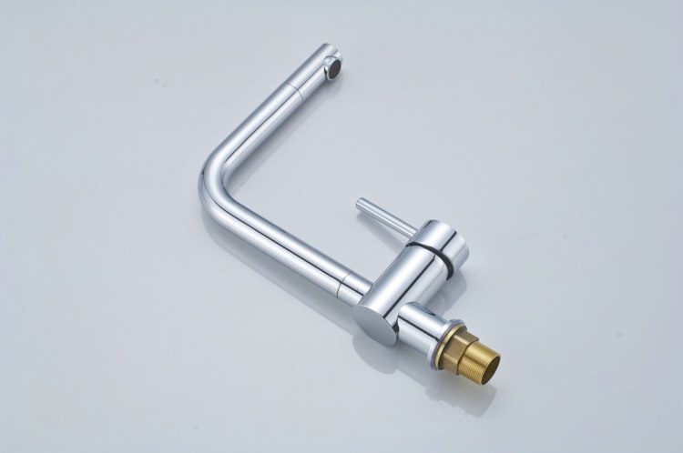 Tay vòi nhỏ gọn: Cần gạt nước nhỏ gọn có thiết kế hình chữ L, nằm thẳng giúp tối ưu không gian bàn bếp. Tay vòi có thể xoay êm ái 90° nên rất dễ dàng để sử dụng.