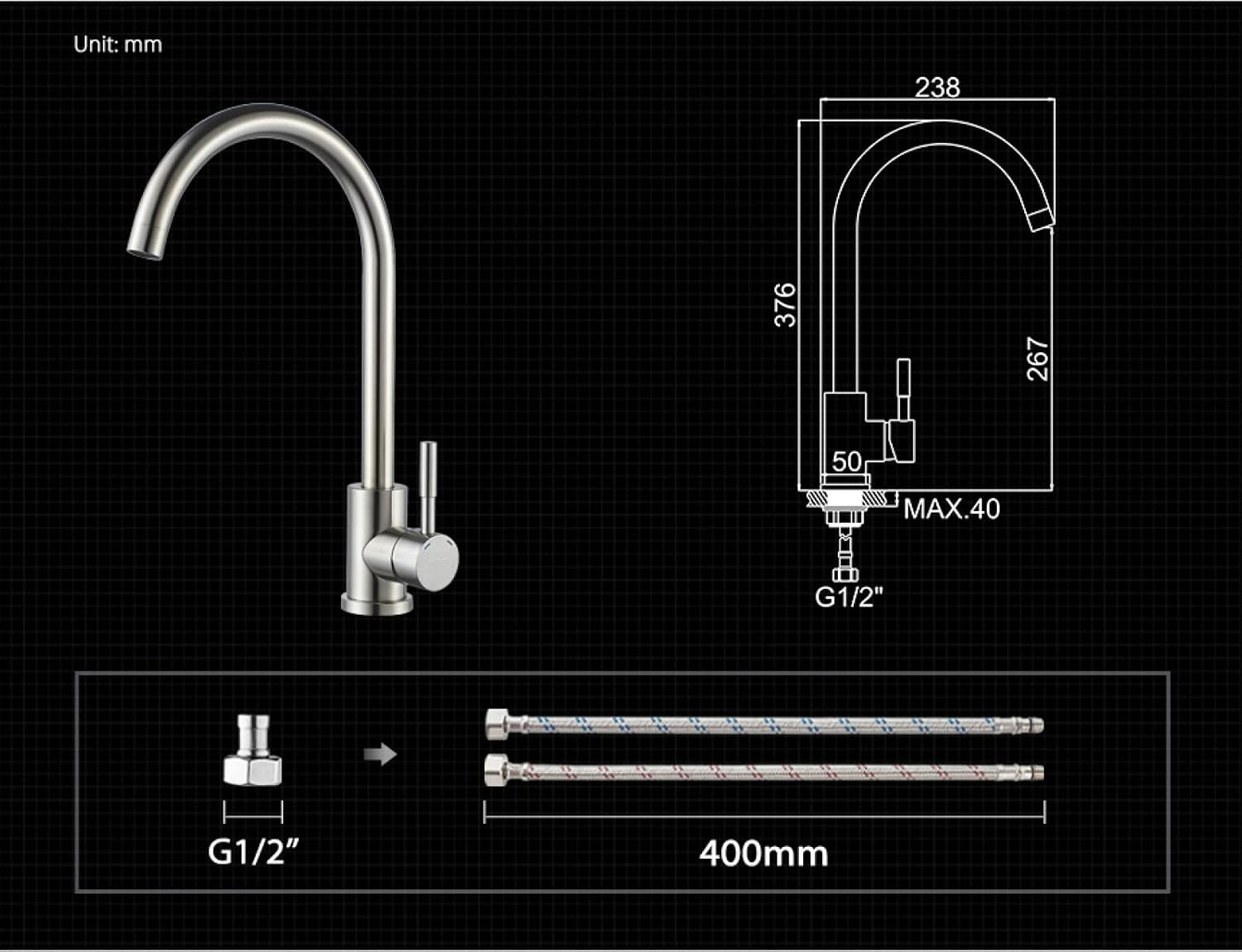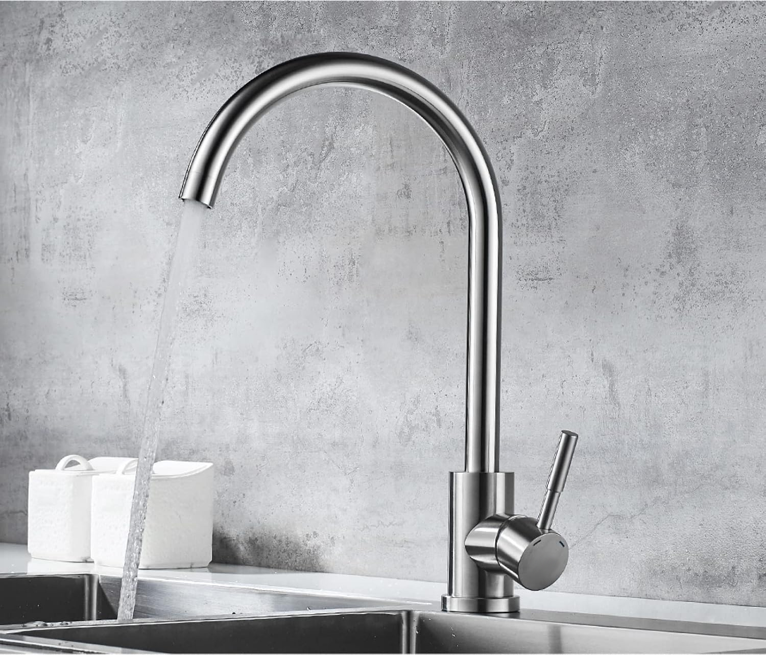 - Vòi được hoàn thiện dưới dạng xước mờ nhưng vẫn có độ bóng sáng nhất định, màu inox phổ thông giúp hạn chế trầy xước và ít bám vân tay, tạo điểm nhấn thẩm mỹ cho góc bếp xinh yêu.