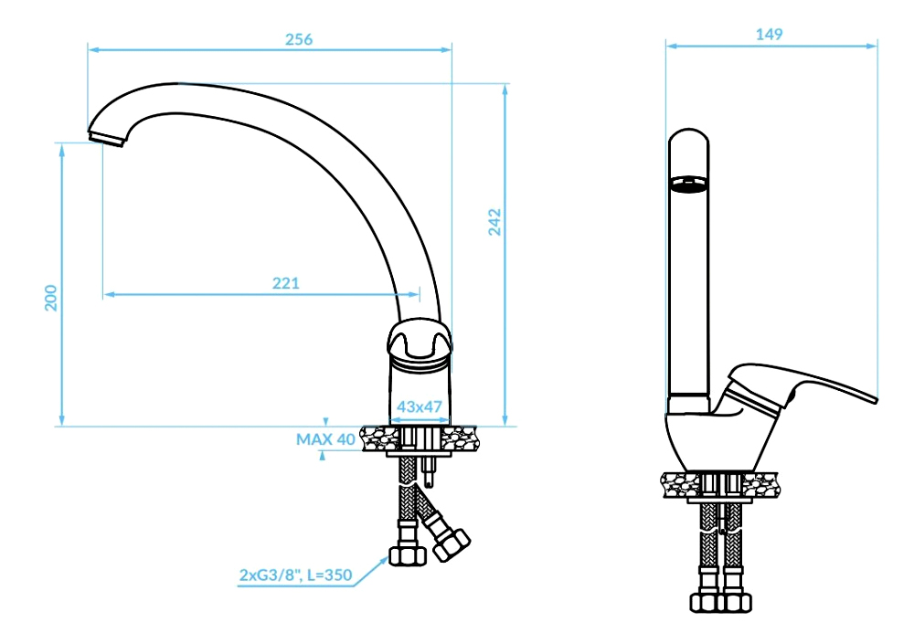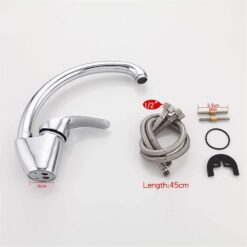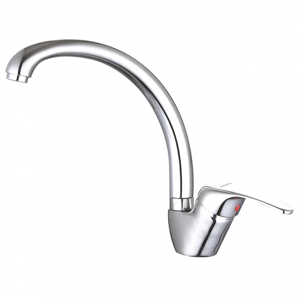- Thiết kế theo phong cách truyền thống với phần thân vòi bo tròn, cần gạt điều khiển nằm ngang uốn cong nhẹ nhàng, tạo vẻ đẹp tinh tế và thanh lịch cho tổng thể không gian nhà bếp.