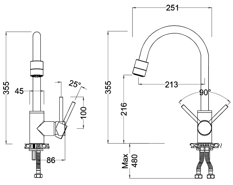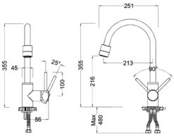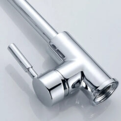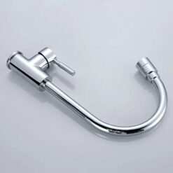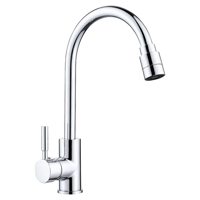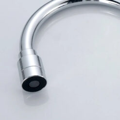 - Thiết kế đầu vòi cong thanh mảnh xoay được 360 độ, thân vòi bo tròn, tay vòi ngang đơn giản nhưng đẹp mắt, dễ dàng kết hợp với mọi kiểu bồn rửa phổ thông.