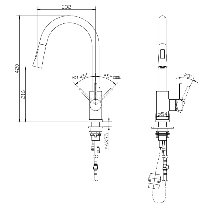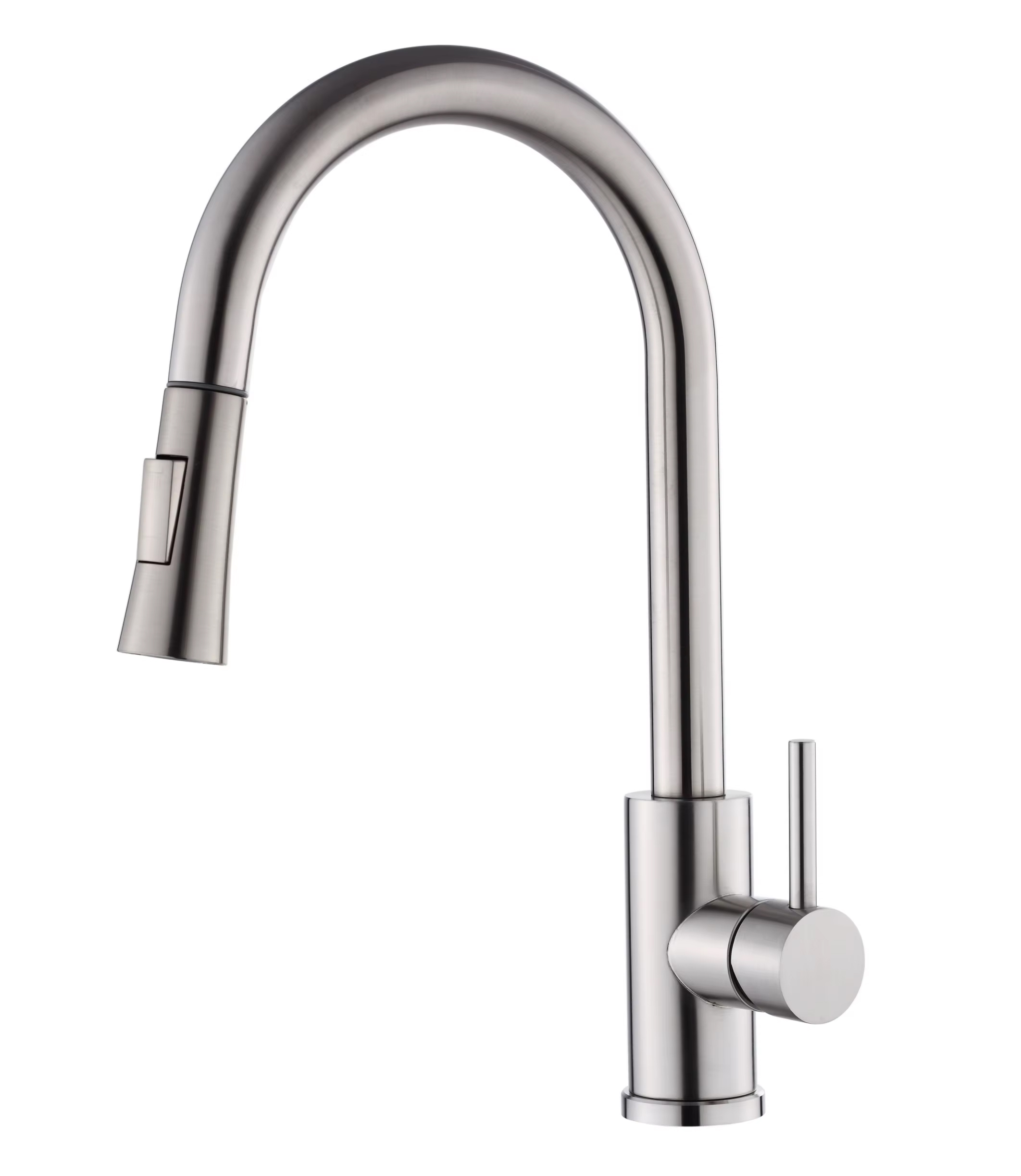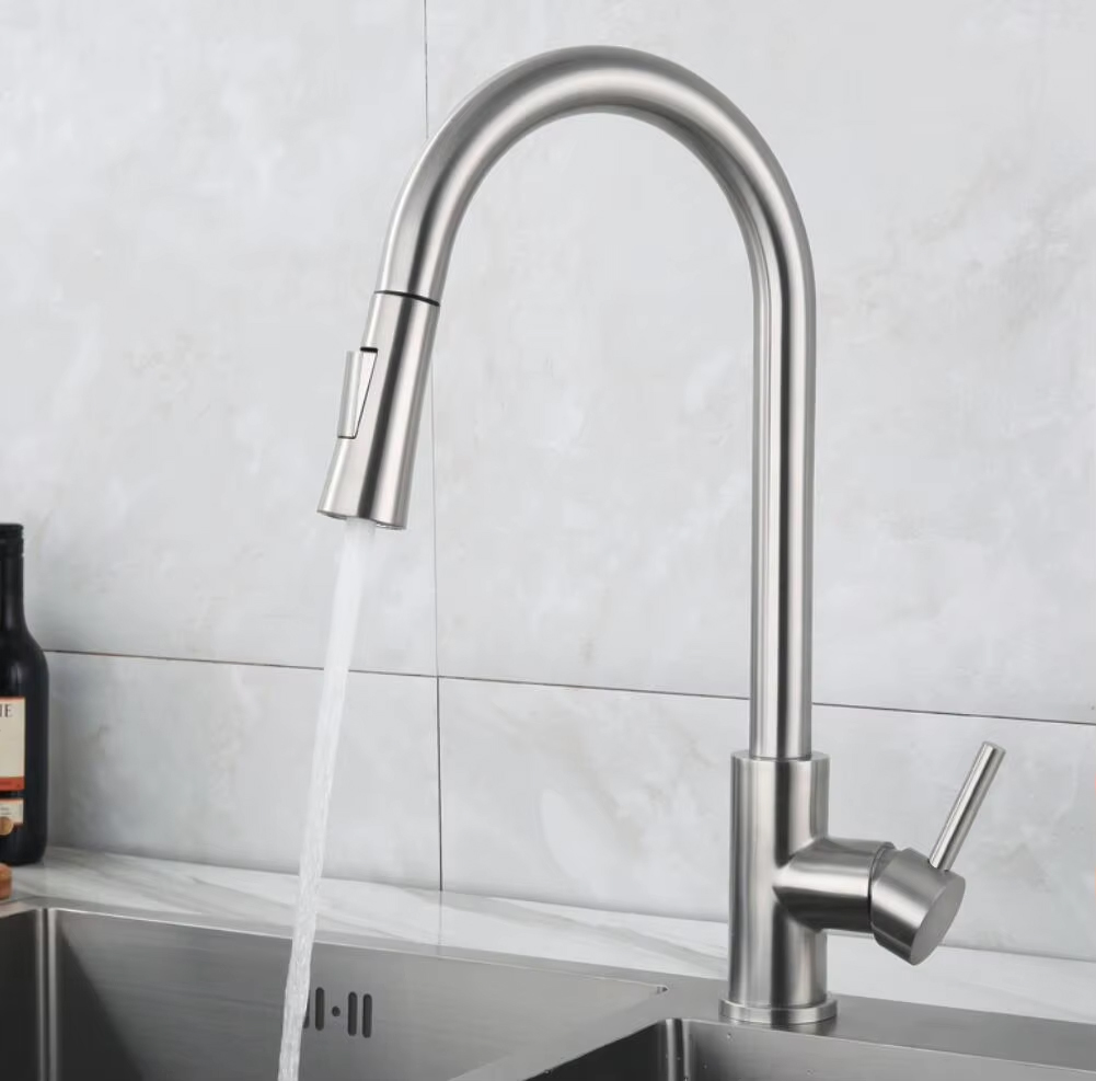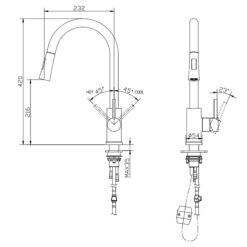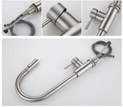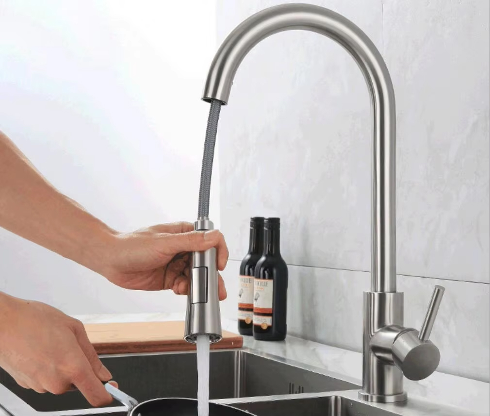 - Thiết kế đầu vòi kéo rút dễ dàng tháo lắp, tạo thêm không gian hoạt động trên bề mặt bồn rửa, kiểu dáng vòi cong đơn giản nhưng tinh tế, thân vòi bo tròn sáng bóng và trơn mượt.