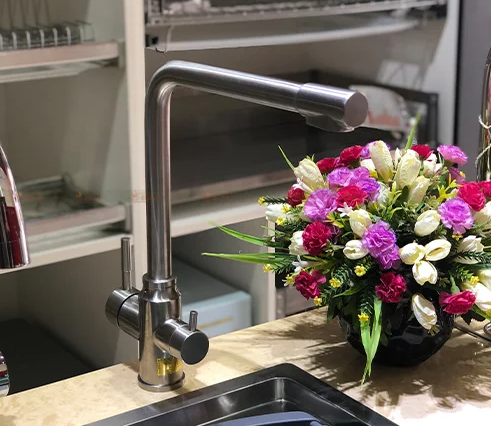- Tích hợp 3 đường nước tiện lợi gồm 1 nước nóng, 1 nước lạnh và 1 nước lọc, tối ưu không gian lắp đặt khả dụng ngay tại khu vực bồn rửa, đáp ứng vừa đủ nhu cầu sử dụng thông thường của hộ gia đình.
