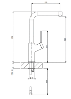 Kích thước lỗ khoét của vòi rửa bát Fiva A Furst F400404CR: đường kính 35mm và chiều cao từ mặt chậu đến thân vòi là 365mm.