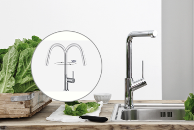 Thân vòi xoay 360 độ tăng phạm vi tiếp cận rửa vật dụng