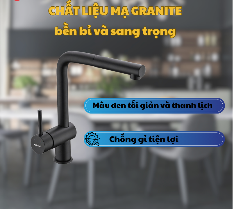Hafele Essence HT21-GH1P250 577.55.390 – Vòi Rửa Bát Cao Cấp Mạ Đá Granite Đen Hiện Đại