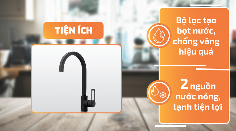 Sản phẩm được trang bị bộ lọc tạo bọt, giúp điều chỉnh chất lượng nước và ngăn ngừa việc văng nước ra ngoài. Điều này giúp tiết kiệm nước và tạo ra dòng nước mịn màng, dễ dàng làm sạch chén bát.