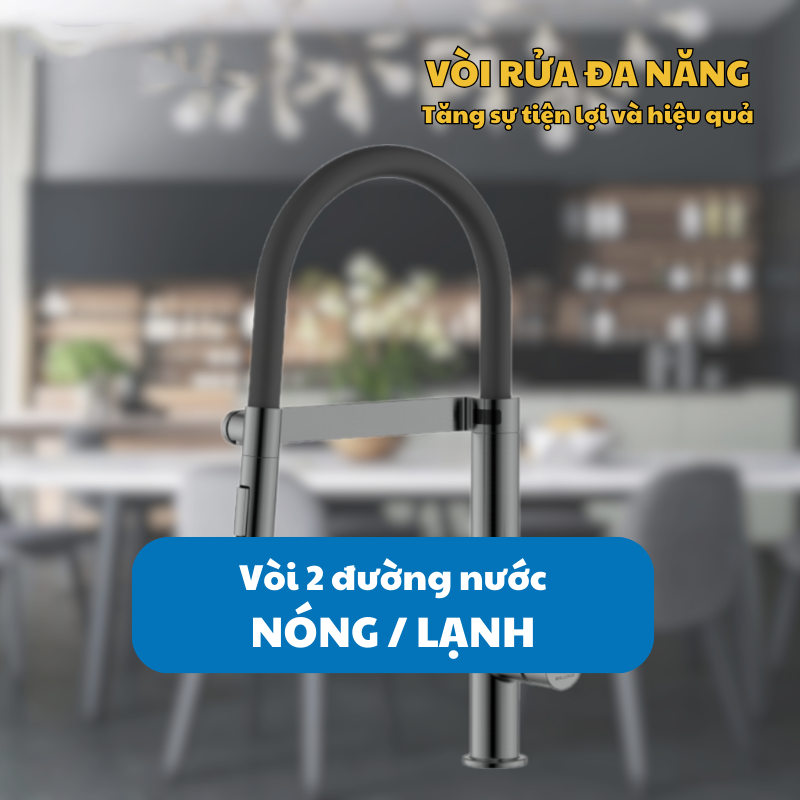Vòi rửa Malloca K586SBS được trang bị 2 đường nước nóng lạnh, cho phép người dùng tùy chỉnh nhiệt độ phù hợp với nhu cầu sử dụng. Tính năng này đặc biệt hữu ích khi rửa bát đĩa dầu mỡ hoặc xử lý thực phẩm trong mùa đông, mang lại sự thoải mái và tiện nghi tối đa.