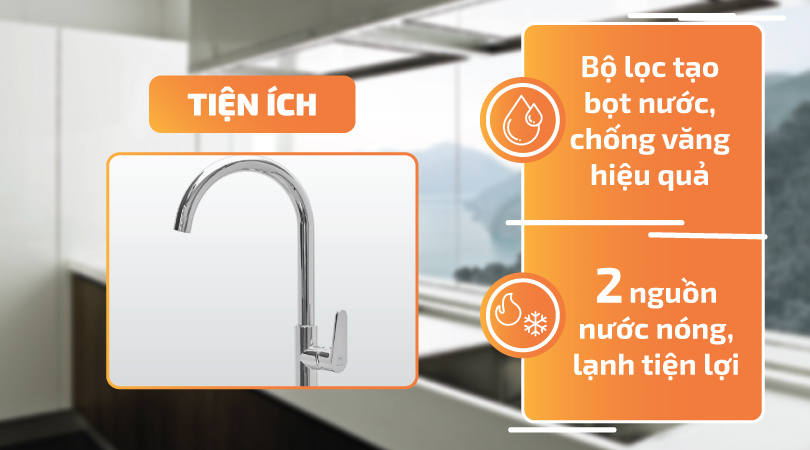 Với thiết kế và công nghệ tiên tiến, vòi rửa đảm bảo cung cấp nguồn nước sạch và tinh khiết. Hệ thống lọc nước hiệu quả giúp loại bỏ các tạp chất, vi khuẩn và các hợp chất gây ô nhiễm khác, đảm bảo rằng nước bạn sử dụng để rửa chén là an toàn và không gây hại cho sức khỏe.