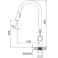 Vòi rửa này không chỉ đẹp mắt mà còn chắc chắn. Thiết kế tổng thể của vòi, bao gồm thân vòi, đầu gạt và cần vòi, được tạo ra với sự hài hòa và tỉ mỉ. Điều này tạo nên một sản phẩm đẳng cấp và phù hợp với mọi không gian nội thất.