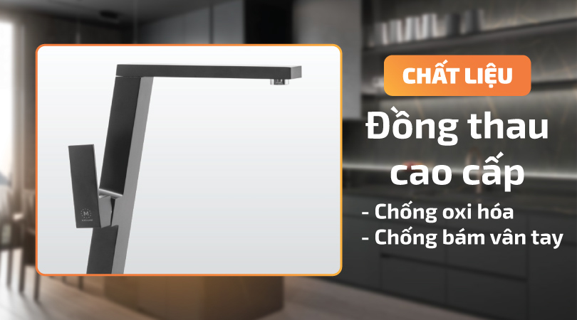 Vòi nước rửa chén Malloca K131GR được làm từ chất liệu đồng thau sơn giả đá cao cấp. Điều này đảm bảo sản phẩm không chỉ có độ bền màu vượt trội theo thời gian, mà còn chống oxi hóa và bám dấu vân tay hiệu quả.