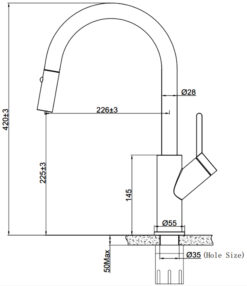 - Đầu vòi kéo dây mở rộng phạm vi làm việc lên đến 76cm