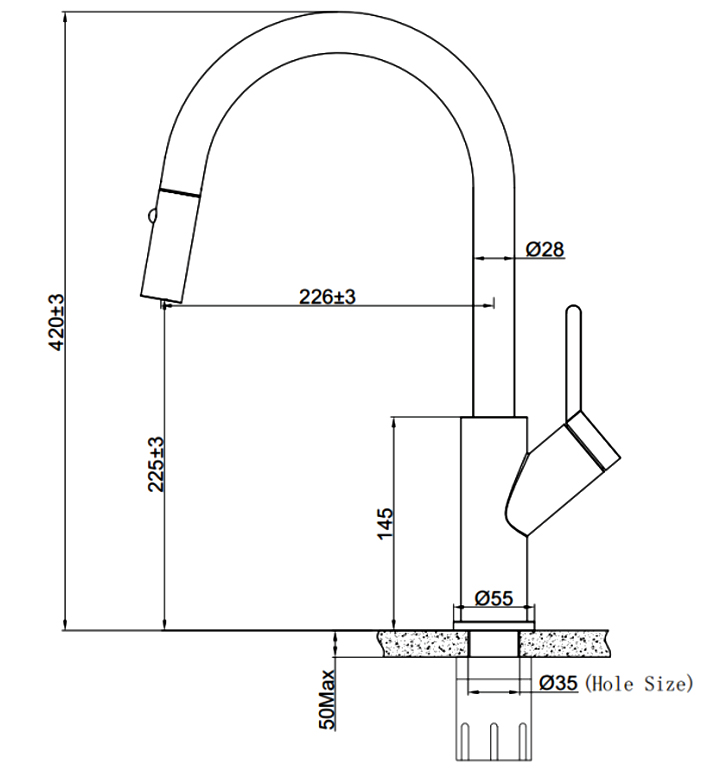 - Đầu vòi kéo dây mở rộng phạm vi làm việc lên đến 76cm