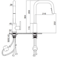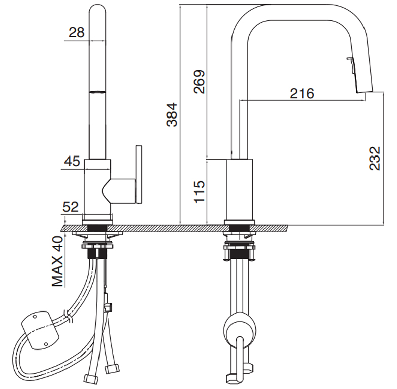 Cung cấp sự tiện lợi và linh hoạt trong quá trình lắp đặt. Dễ dàng lắp đặt, kết nối đường ống, nguồn nước nóng – lạnh với lõi dây vòi rửa bát nhanh chóng.