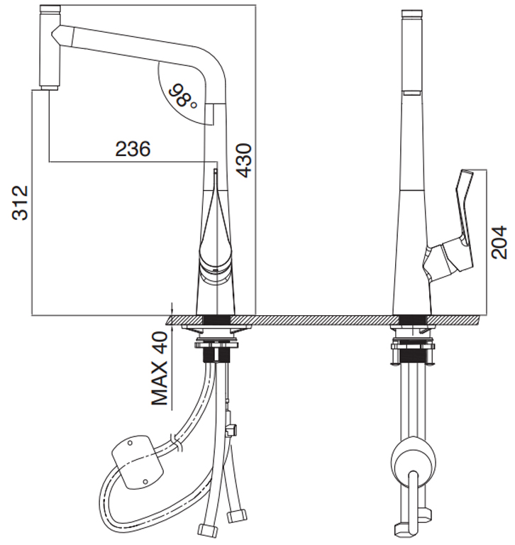 Cung cấp sự tiện lợi và linh hoạt trong quá trình lắp đặt. Dễ dàng lắp đặt, kết nối đường ống, nguồn nước nóng – lạnh với lõi dây vòi rửa bát nhanh chóng.