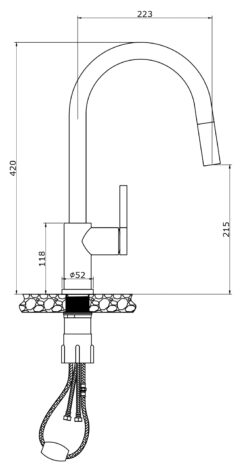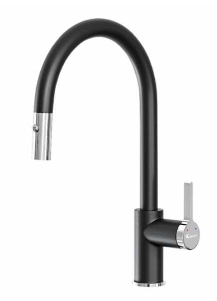 - Vòi rửa bát rút dây Konox Alto Black 2 đường nóng lạnh
