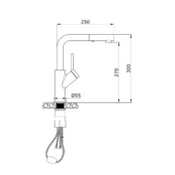 - Đầu vòi kéo dây mở rộng phạm vi làm việc lên đến 76cm