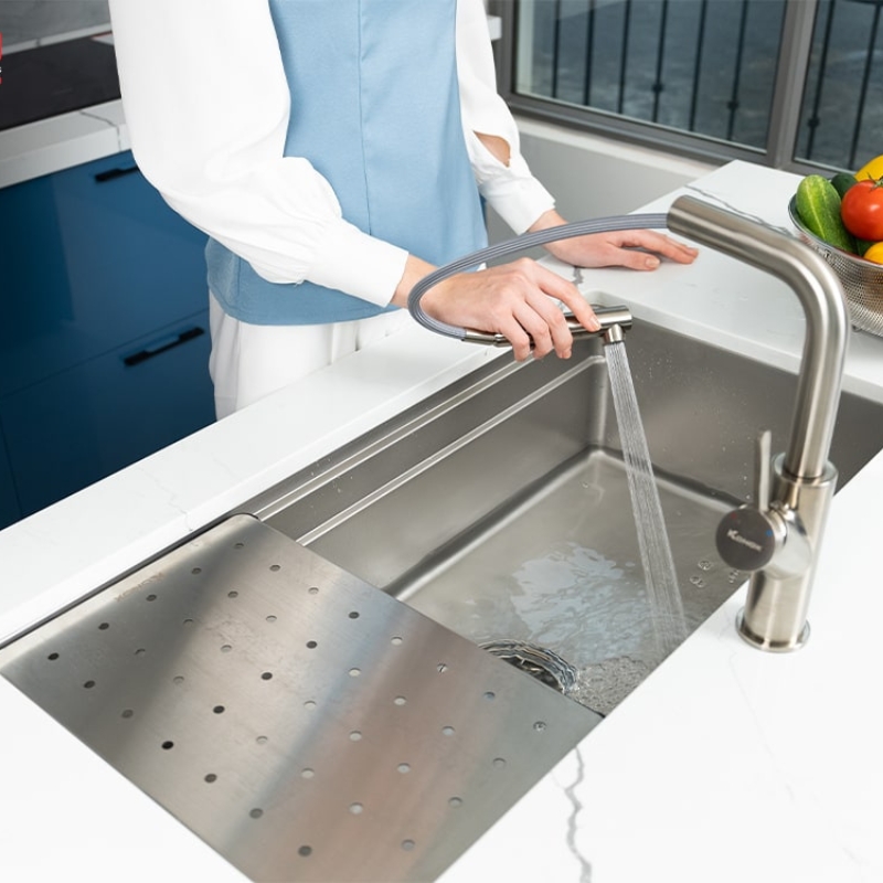 - Tay vòi ngang tối ưu không gian bàn bếp