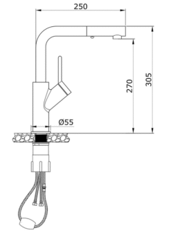 - Đầu vòi kéo dây mở rộng phạm vi làm việc lên đến 76cm