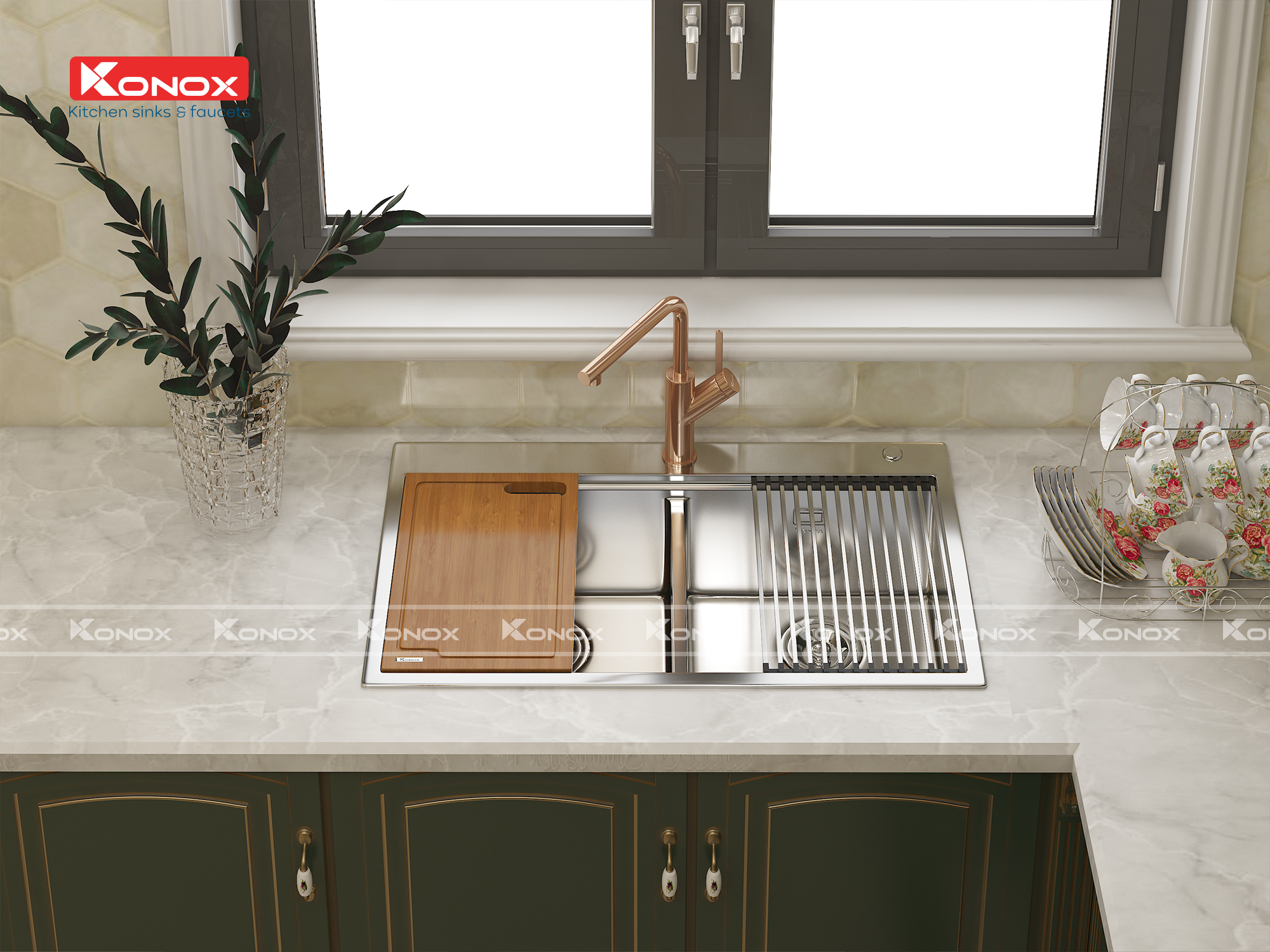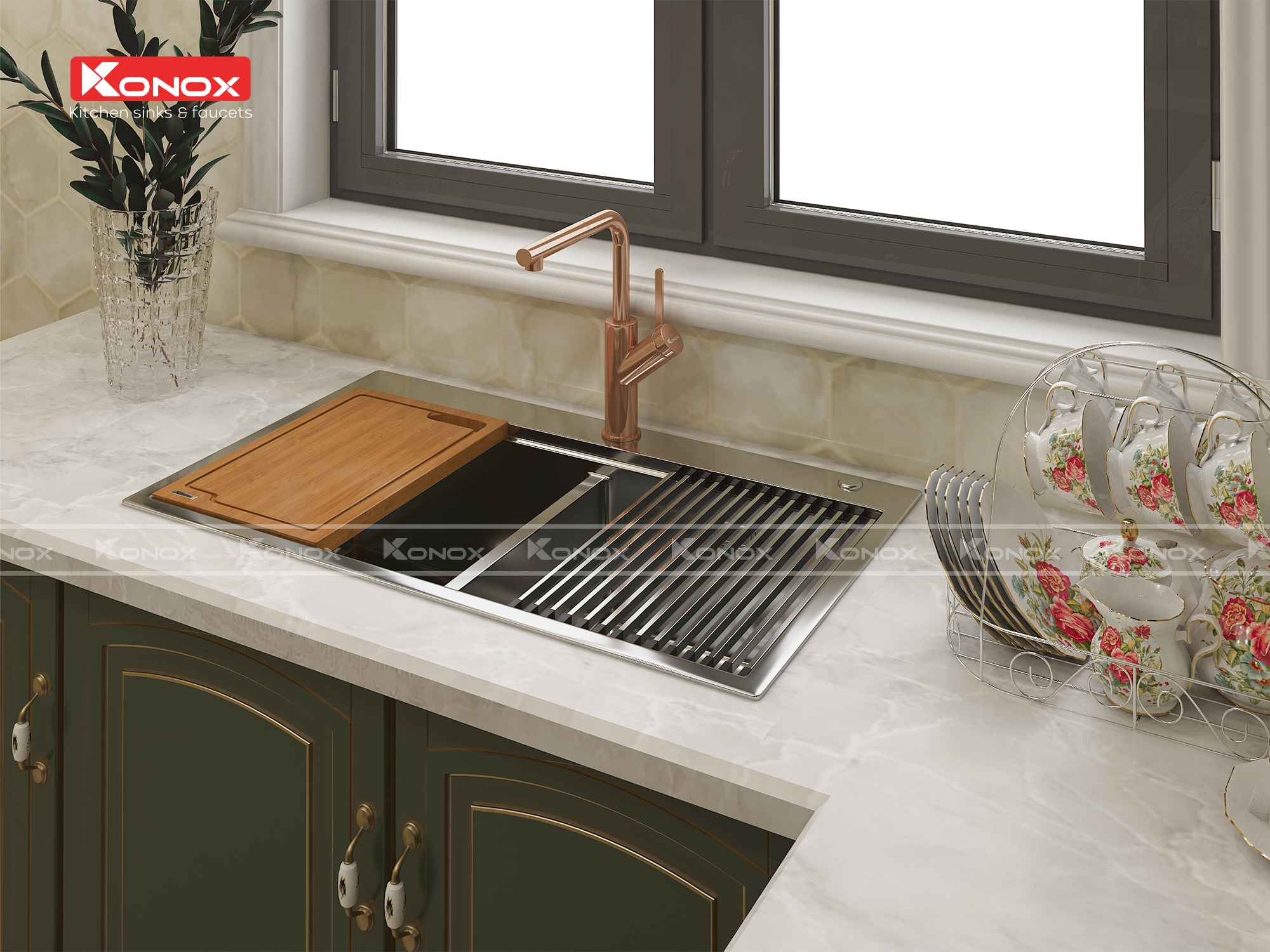 - Vòi rửa Konox Artan Rose Gold 2 đường nóng lạnh