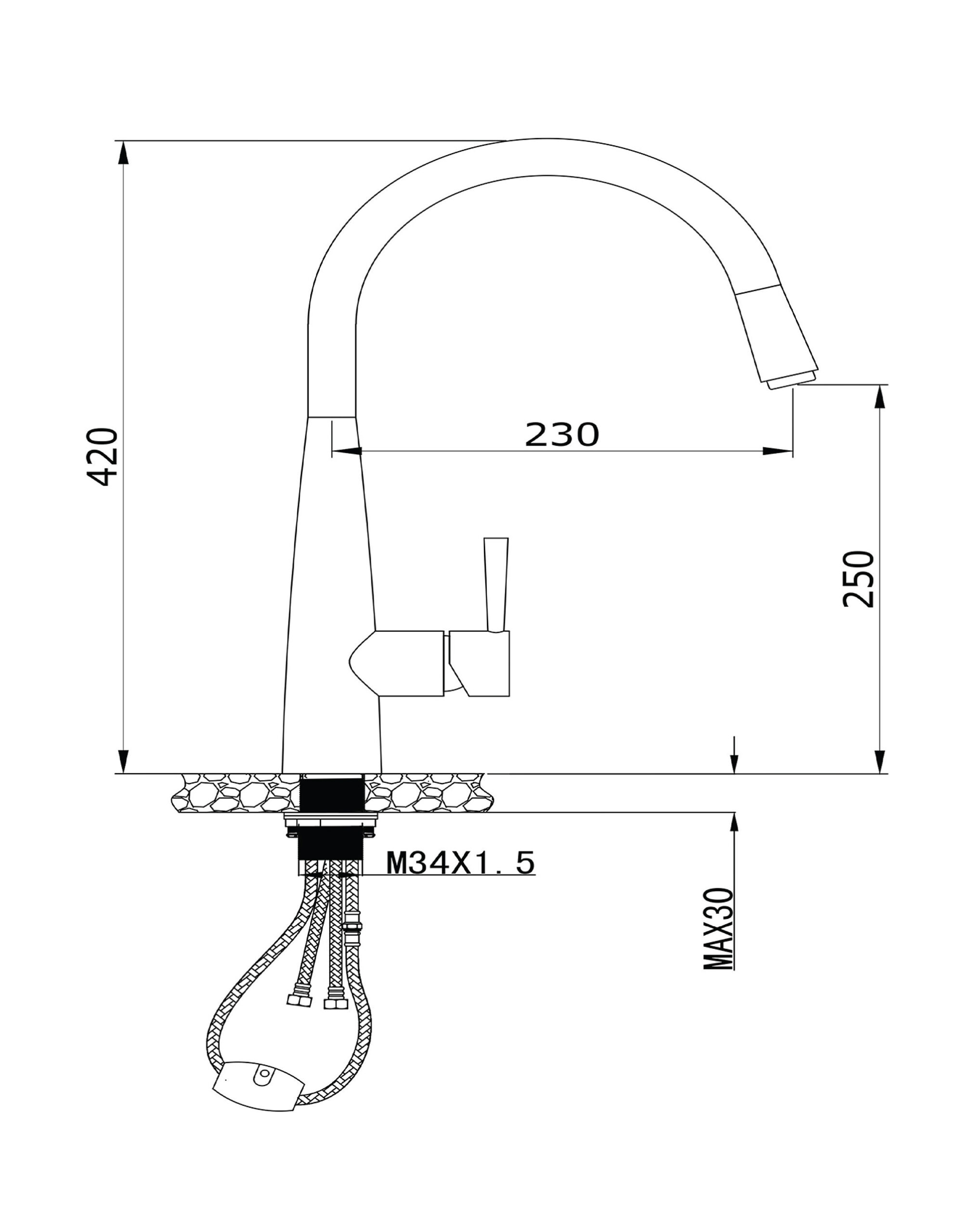 - Đầu vòi kéo dây mở rộng phạm vi làm việc lên đến 76cm