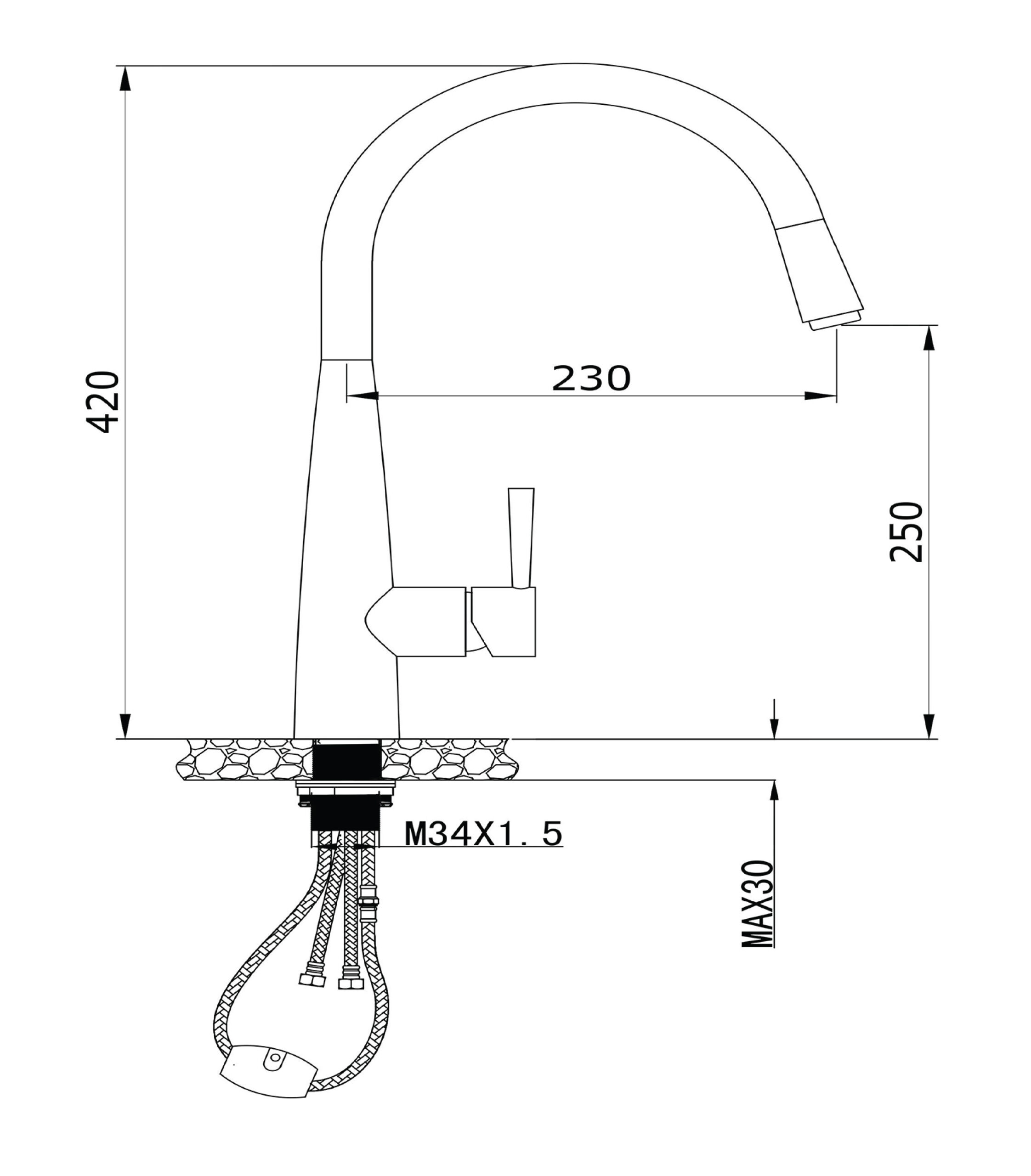 - Đầu vòi kéo dây mở rộng phạm vi làm việc lên đến 76cm