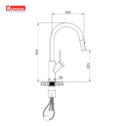 - Vòi rửa Konox Ponte Grey 2 đường nóng lạnh