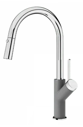 - Bề mặt vòi rửa Konox Ponte Grey mạ sáng bóng bền lâu, chống bám vân tay với công nghệ mạ PVD mạ vân đá