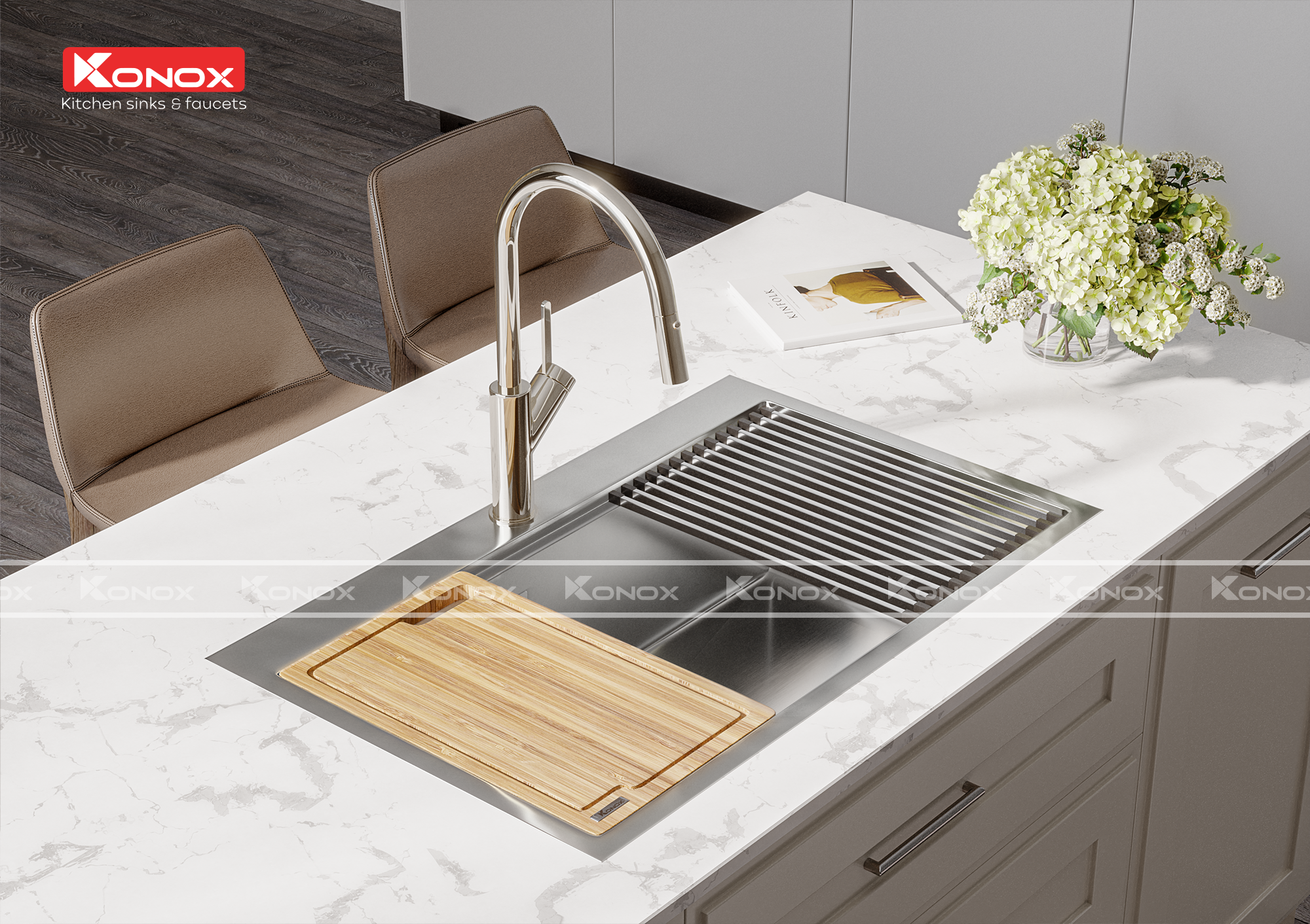 - Vòi rửa Konox Ponte Nickel 2 đường nóng lạnh