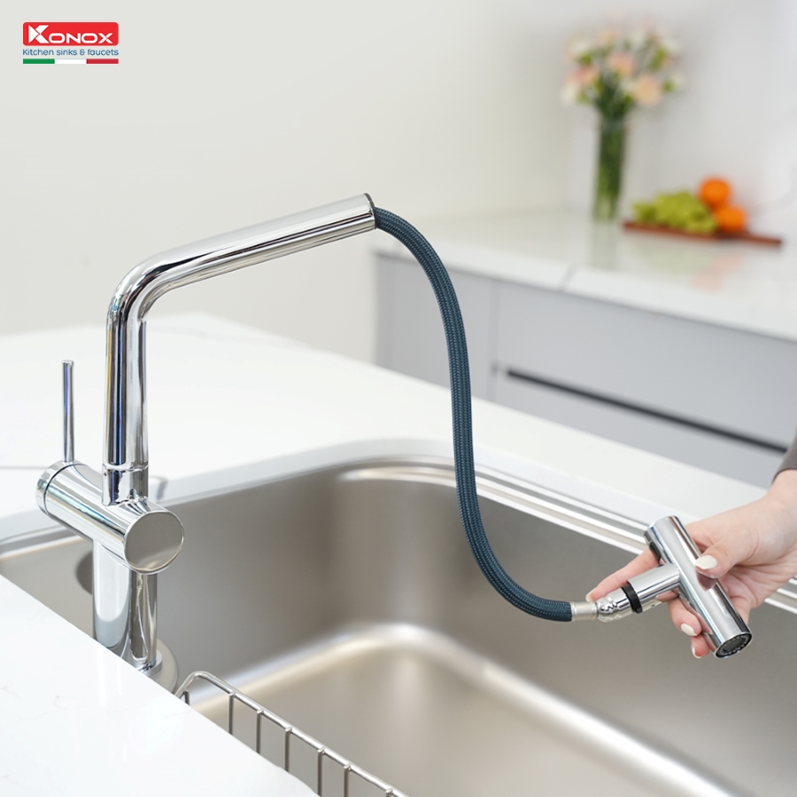 Vòi rửa Konox dây rút Volta Chrome nóng lạnh