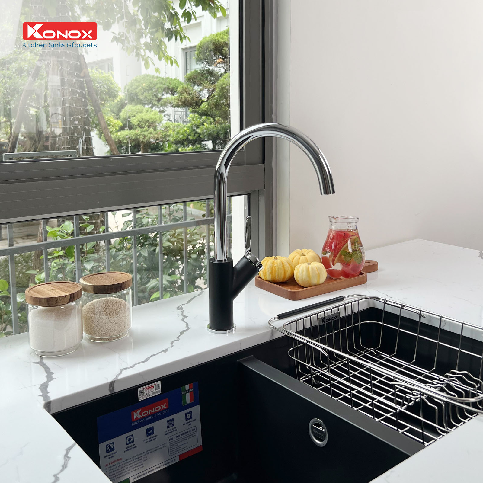 - Vòi rửa Konox Modo Black có 2 đường nóng lạnh