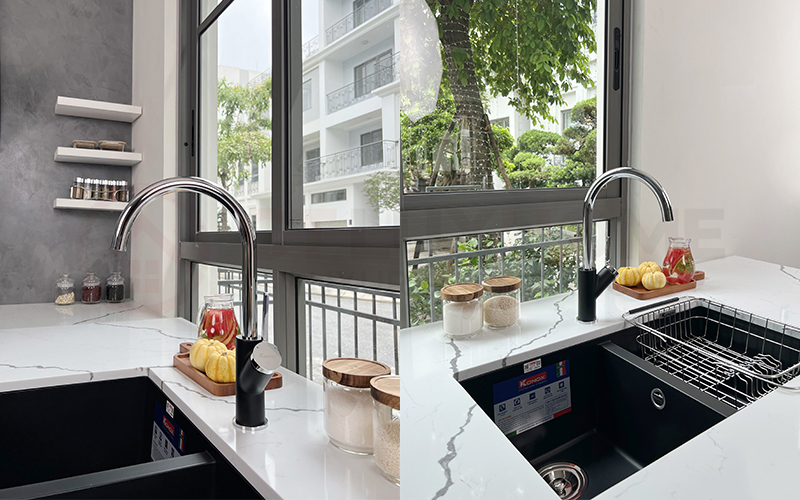 - Tay vòi ngang tối ưu không gian bàn bếp