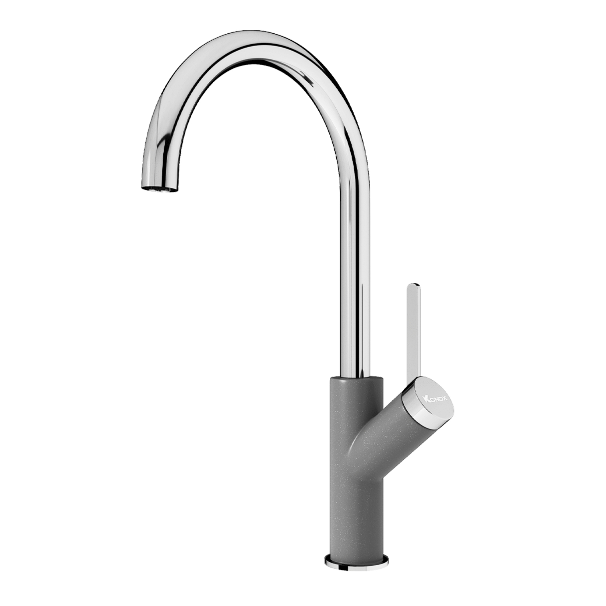 - Bề mặt vòi rửa Konox Modo Grey mạ sáng bóng bền lâu, chống bám vân tay với công nghệ mạ PVD mạ vân đá